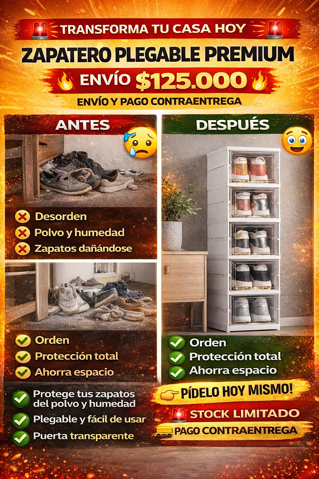 Todo excelente, llegó en 2 días por Servientrega. El zapatero plegable es muy práctico para guardar.