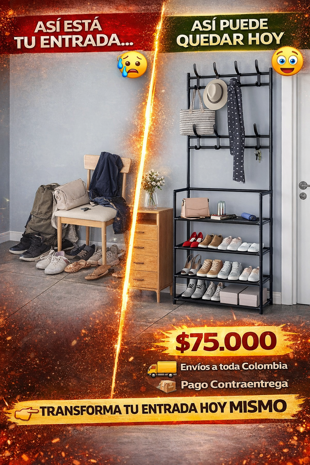Recibido el perchero zapatero. Muy estable y ahorra demasiado espacio en la entrada. Vale cada peso.
