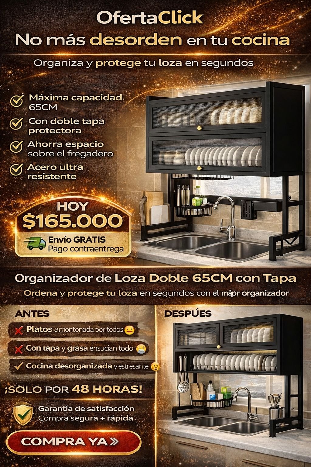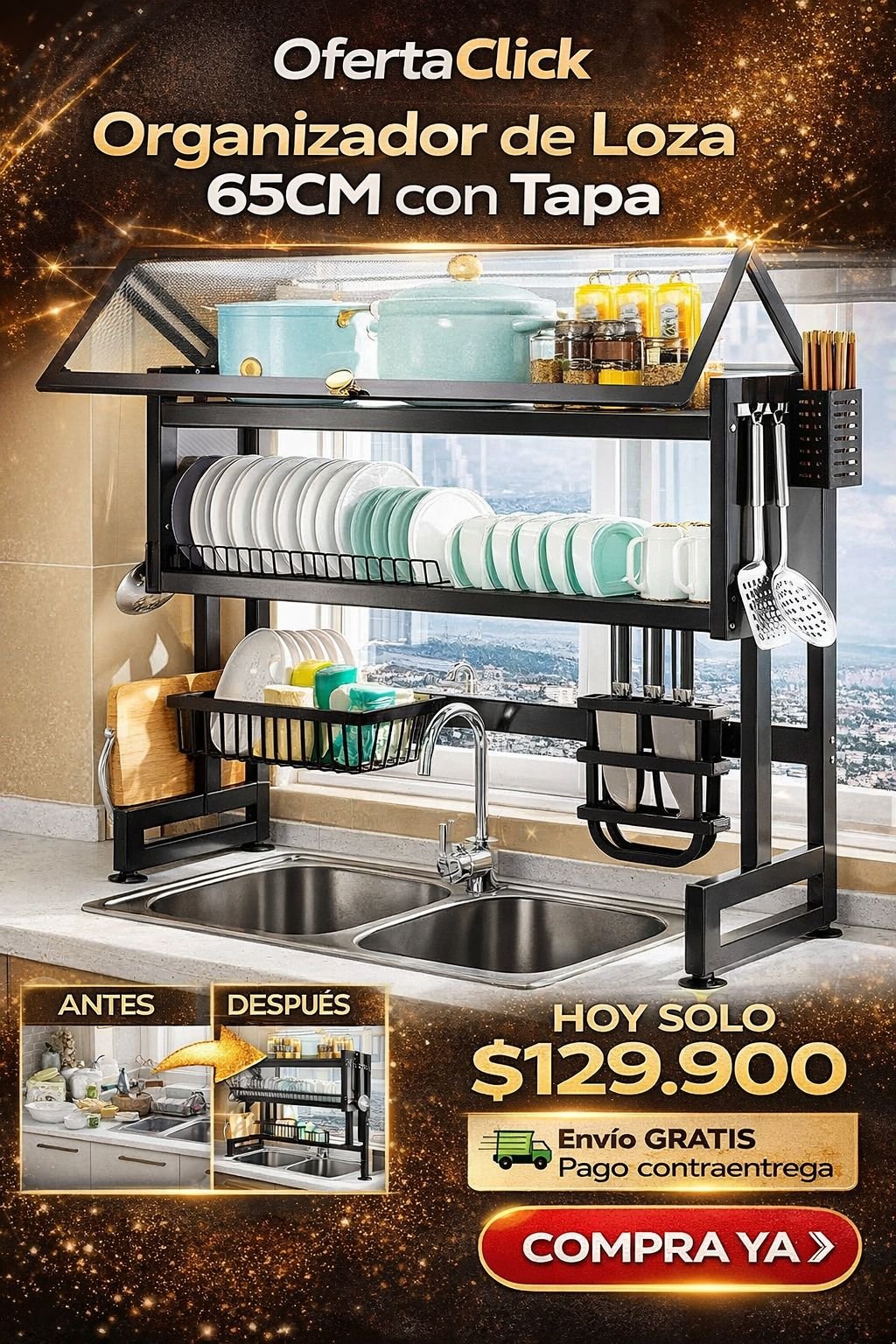 El organizador de loza quedó de 10 en mi cocina. Pagué al recibir sin problema, el mensajero fue muy amable.
