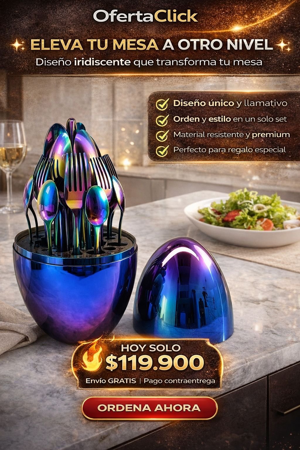 Súper enamorada de mis cubiertos iridiscentes. Brillan hermoso en la mesa. ¡Excelente servicio!