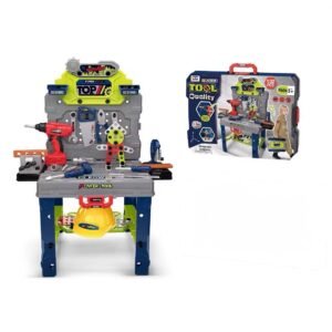 Juego de Herramientas Infantil 2 en 1 (201A). Set de taller de juguete convertible con una variedad masiva de 132 piezas. Se transforma en un banco de trabajo/taller con medidas de 81.5×31.5×68.5 cm.
