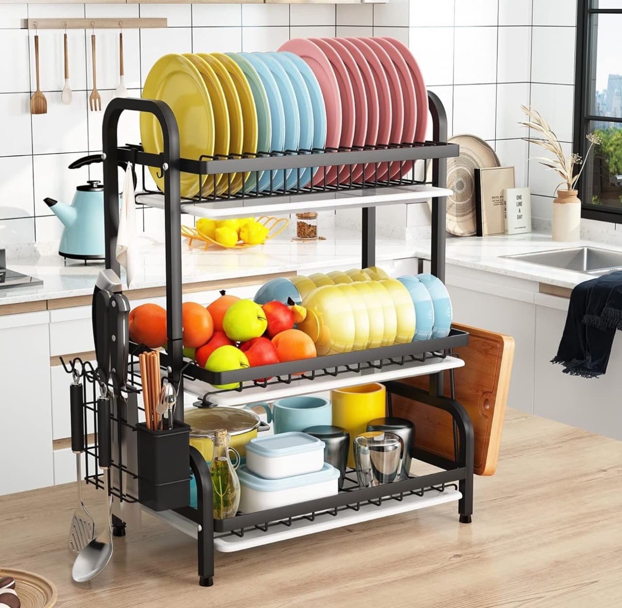 ¿Cansado de un mesón desordenado y mojado? Nuestro Organizador de Loza de 3 Niveles es la solución perfecta para optimizar cada centímetro de tu cocina, combinando gran capacidad, funcionalidad y un diseño moderno.