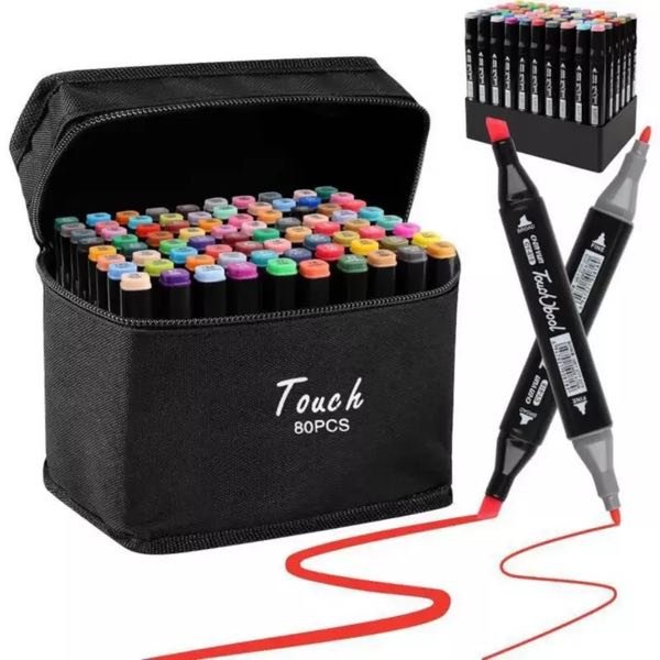 Amplía tu paleta creativa con nuestro Set de 80 Marcadores de Doble Punta. Este estuche es la herramienta perfecta para ilustradores, estudiantes de arte, diseñadores y aficionados, ofreciendo una amplia gama de colores y la versatilidad de dos puntas por marcador.