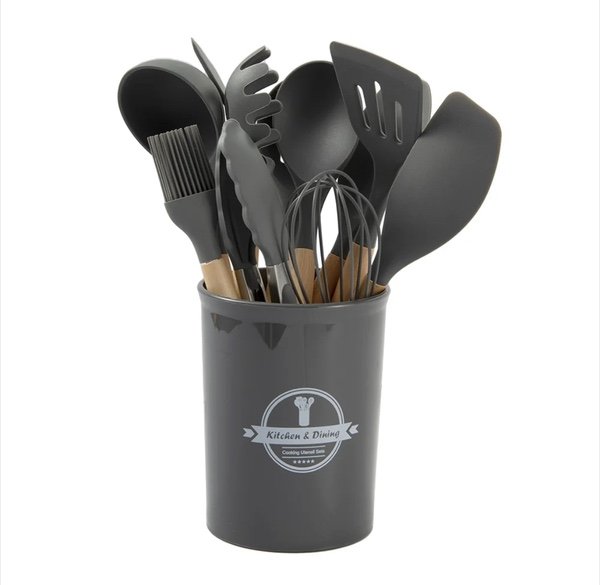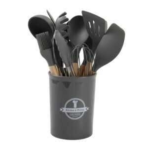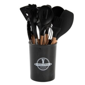 Set de Utensilios de Cocina de Silicona y Madera (12 Piezas) K-12P | Diseño Premium y Antiadherente