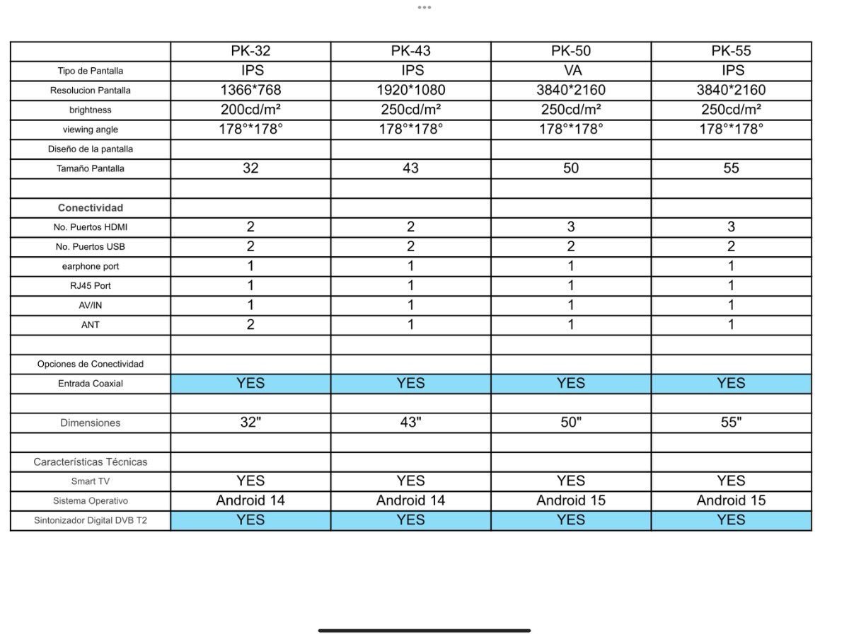 Disfruta de entretenimiento sin límites con el Televisor PK VISION de 32 pulgadas. Equipado con el rápido sistema operativo Android 14, tendrás acceso a tus aplicaciones de streaming favoritas. Cuenta con resolución HD (1366×768), múltiples puertos HDMI y USB, y sintonizador TDT.