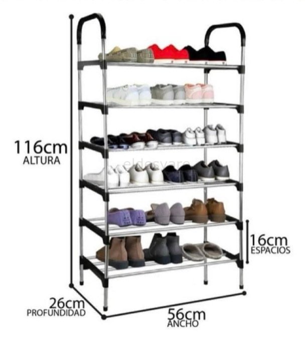 ¡Maximiza tu espacio al instante! Este práctico organizador de zapatos de 6 niveles es la solución ideal para mantener tu entrada o armario libre de desorden. Con unas medidas compactas de 110 cm de alto x 60 cm de ancho, ofrece una gran capacidad sin ocupar demasiado suelo. Su diseño robusto y fácil de montar es perfecto para cualquier hogar que necesite un extra de orden y estilo. ¡Dile adiós a los zapatos apilados!