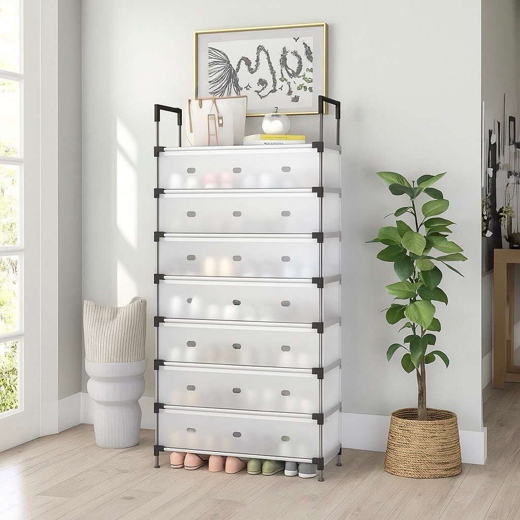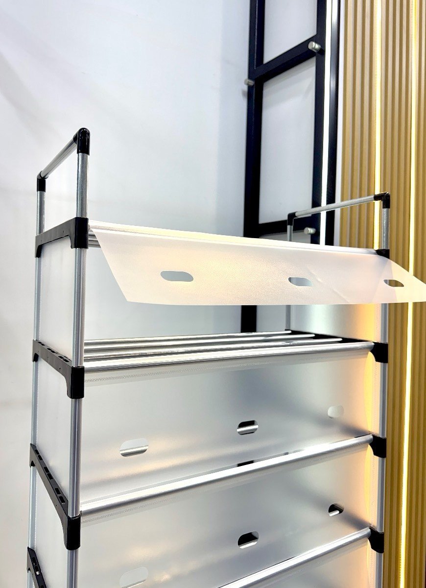 Zapatero Metálico de 8 Niveles con Cubierta Antipolvo | Capacidad Máxima y Protección para Calzado Mantén tu colección de calzado ordenada y protegida del polvo y la humedad con nuestro Zapatero Metálico Cubierto de 8 Niveles. Esta solución de almacenamiento vertical es ideal para pasillos, armarios o cuartos de servicio, maximizando el espacio disponible. 🗄️ Máxima Capacidad Vertical: * 8 Niveles de Almacenamiento: Con ocho estantes (niveles) resistentes, el zapatero ofrece una capacidad superior, permitiendo organizar hasta 16-20 pares de zapatos (dependiendo del tipo y tamaño). • Medidas Optimizadas: Con una altura de 143 cm y un ancho de 56 cm (la profundidad se asume que es la medida faltante), utiliza el espacio vertical de manera eficiente. 🛡️ Diseño Inteligente de Protección: • Cubierta con Solapa (Antipolvo): La principal ventaja es su cubierta de tela (generalmente no tejida o lona) con un diseño de solapa o cremallera. Esta cubierta protege el calzado del polvo, la humedad y mantiene los zapatos fuera de la vista, logrando un ambiente más limpio y ordenado. • Estructura Metálica Robusta: Los marcos y soportes internos son de metal (generalmente tubos de acero), garantizando la estabilidad y la durabilidad necesarias para soportar el peso de todo tipo de calzado. ✅ Facilidad y Versatilidad: • Fácil de Ensamblar: El diseño modular suele permitir un montaje rápido y sin herramientas complejas. • Versátil: Es perfecto para organizar zapatos, pero también puede usarse para guardar toallas dobladas, cajas pequeñas o ropa en armarios. ¡La solución ideal para un hogar organizado, limpio y libre de desorden de calzado!