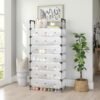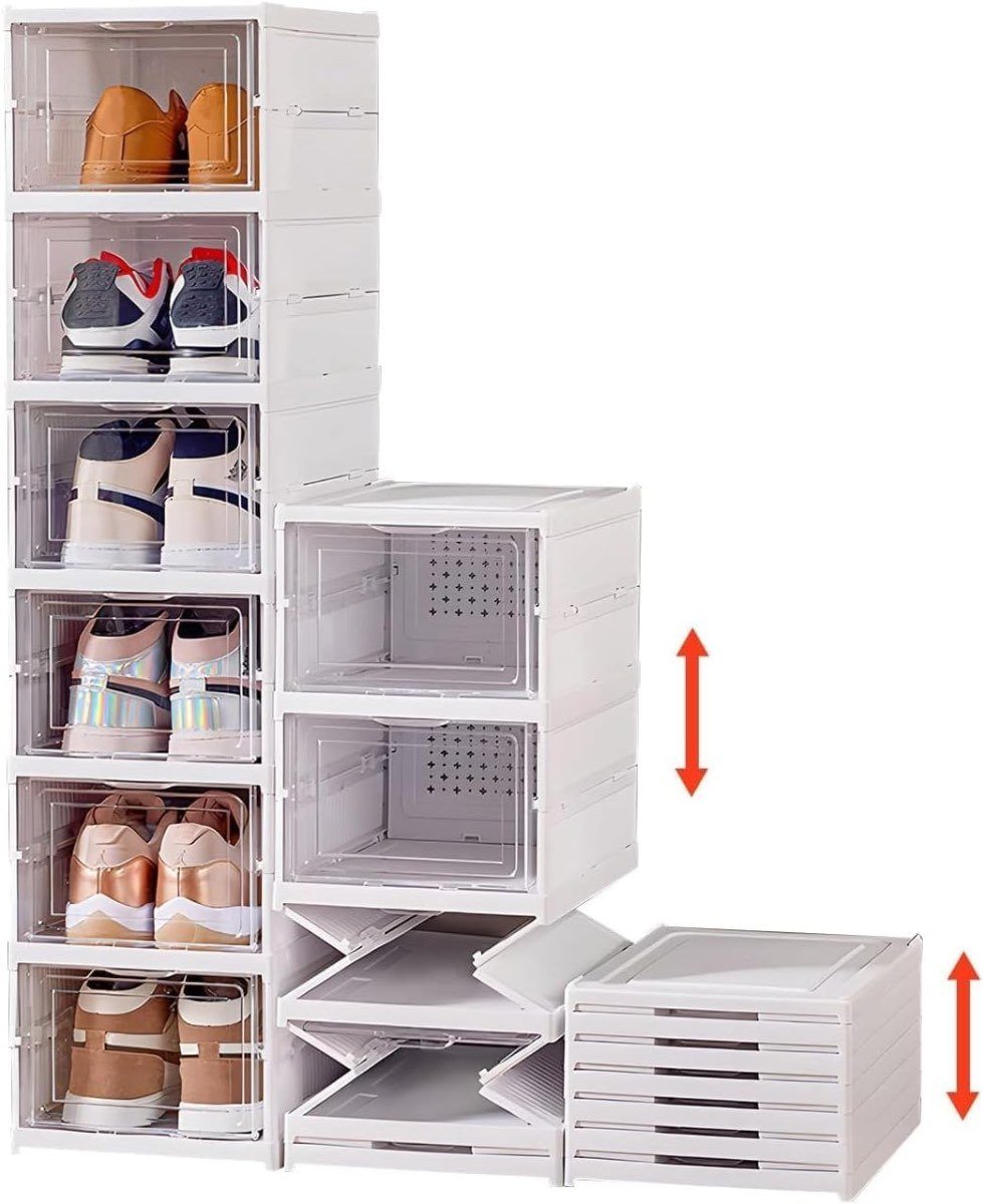 Fabricado con una combinación de acrílico transparente en las puertas y plástico de alta resistencia, este zapatero no solo garantiza durabilidad a largo plazo, sino que también facilita la identificación rápida de tus pares favoritos sin necesidad de abrir cada caja.